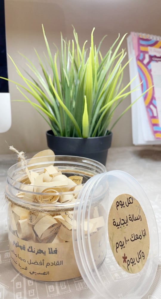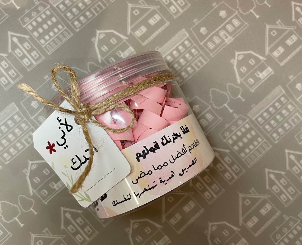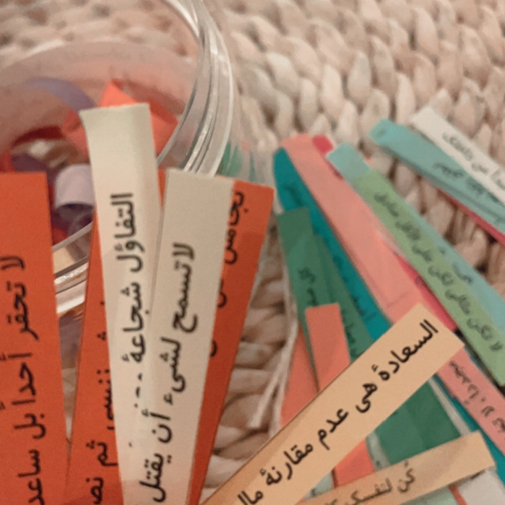 علبة تحتوي على 100 ورقة بها عبارات إيجابية متنوعة.